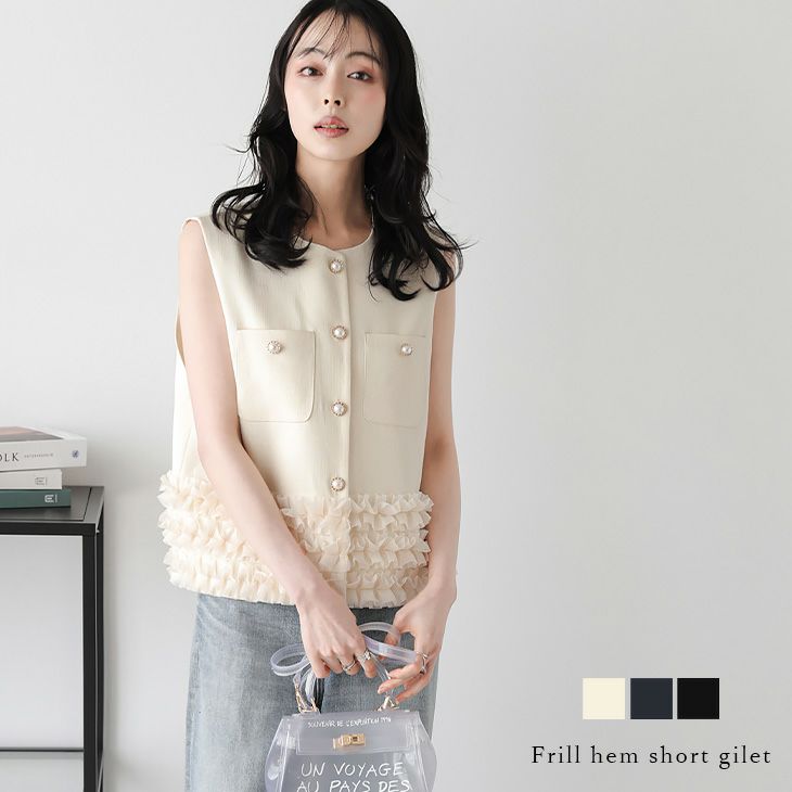 他の画像を見る ジレ ベスト テーラード チュール フリル 【春夏半額SALE対象】 [AMELY by La-gemme]ジレ ベスト テーラード チュール フリル ティアード レイヤード フェミニン ガーリー アウター レディース おすすめ おしゃれ フリーサイズ 2025春夏新作 【atpss25-988】【即納&予約:4月2日入荷予定順次発送】【送料無料】メ込2 通常 ¥ 7,980 のところ ¥ 3,980 税込 詳細を見る お気に入りに登録する