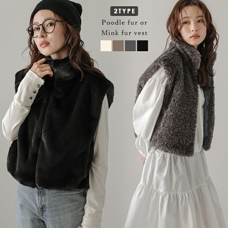 ファーベスト プードルファー ミンクファー 2タイプ ショート丈 [AMELY by La-gemme]ファーベスト プードルファー ミンクファー 2タイプ ショート丈 スタンドネック レイヤード 暖かい アウター レディース おすすめ おしゃれ 2025春夏新作 【aotaw24-884】【即納:1-5営業日】【送料無料】宅込