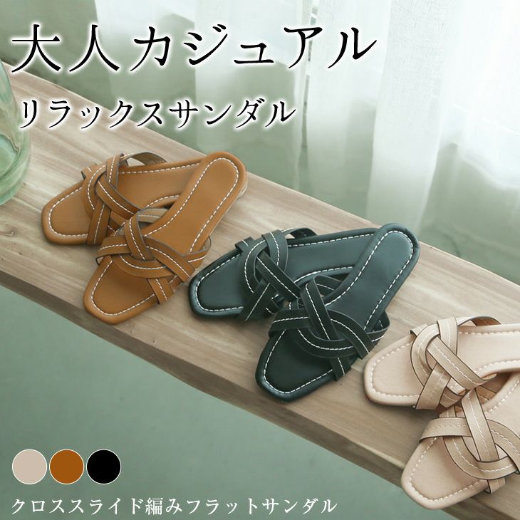 フラット サンダル 編み込み クロススライド編みフラットサンダル フラット サンダル クロス編み 編み込み フラットシューズ カジュアルミュール スリッパ ビーチサンダル シンプル 無地 ローヒール 【lgww-at2065】【即納:1-5営業日】【送料無料】メ込2