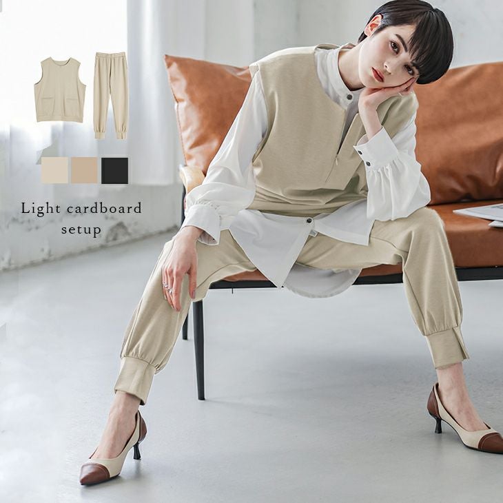 セットアップ セットアイテム ライトダンボール 上品 セットアップ ベスト パンツ 裾スリット ジョガーパンツ ベージュトーン ナチュラルカラー ライトダンボール 上品 レディース 大人カジュアル キレイめ おすすめ おしゃれ 2025春夏新作 【lgww-at3143】【即納:1-5営業日】【送料無料】60込