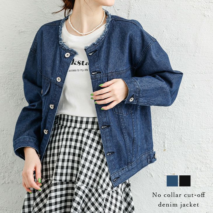 ノーカラー デニムジャケット レディース Gジャン ジージャン ノーカラー デニムジャケット レディース Gジャン ジージャン デニム ジャケット 長袖 ショート アウター ライトアウター 羽織 カットオフ ゆったり 大人 トップス ブラック 2025春夏新作 M/L 【lgww-at4899】【即納:1-5営業日】60込