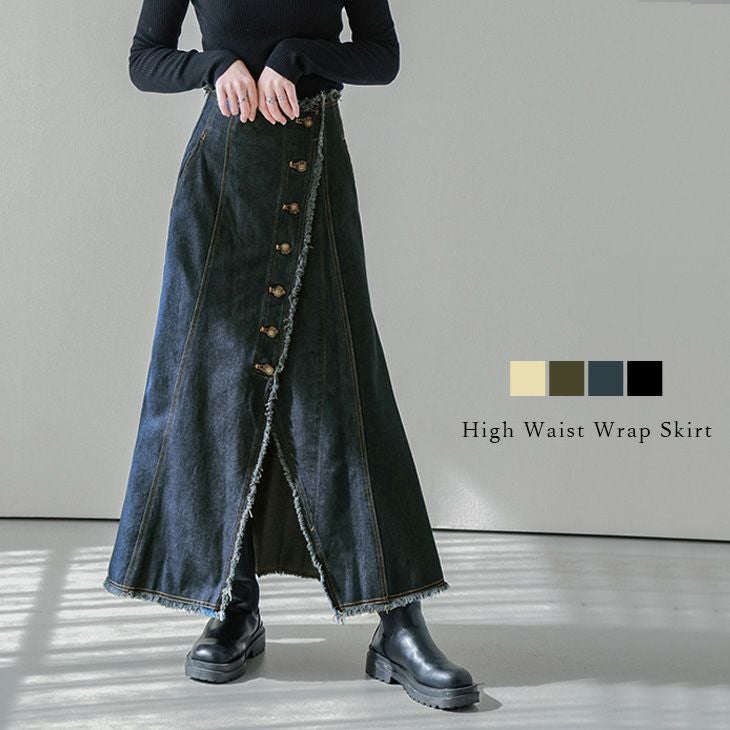 スカート ロング レディース デニム マキシ丈 スカート ロング レディース デニム マキシ丈 ロングスカート ボトムス ラップスカート おしゃれ フリンジ ブラック メール便 2025春夏新作 M/L 【lssk301-416】【即納:1-5営業日】【送料無料】ヤ込1