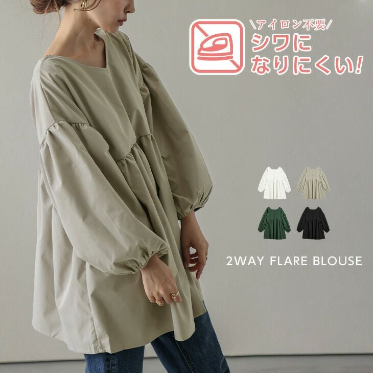 チュニックブラウス 2WAY Aライン 長袖 ボリューム袖 チュニックブラウス 2WAY Aライン 長袖 ボリューム袖 トップス レディース シワになりにくい ブラック フリーサイズ メール便 2025秋新作 【lstp205-335】【即納:1-5営業日】【送料無料】ヤ込1