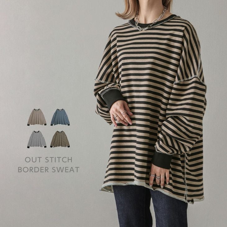ボーダースウェット ビッグサイズ 長袖 アウトステッチ ボーダースウェット ビッグサイズ 長袖 アウトステッチ トップス レディース おすすめ おしゃれ ブラック フリーサイズ メール便 2025秋新作 【lstp208-341】【即納:1-5営業日】【送料無料】ヤ込1