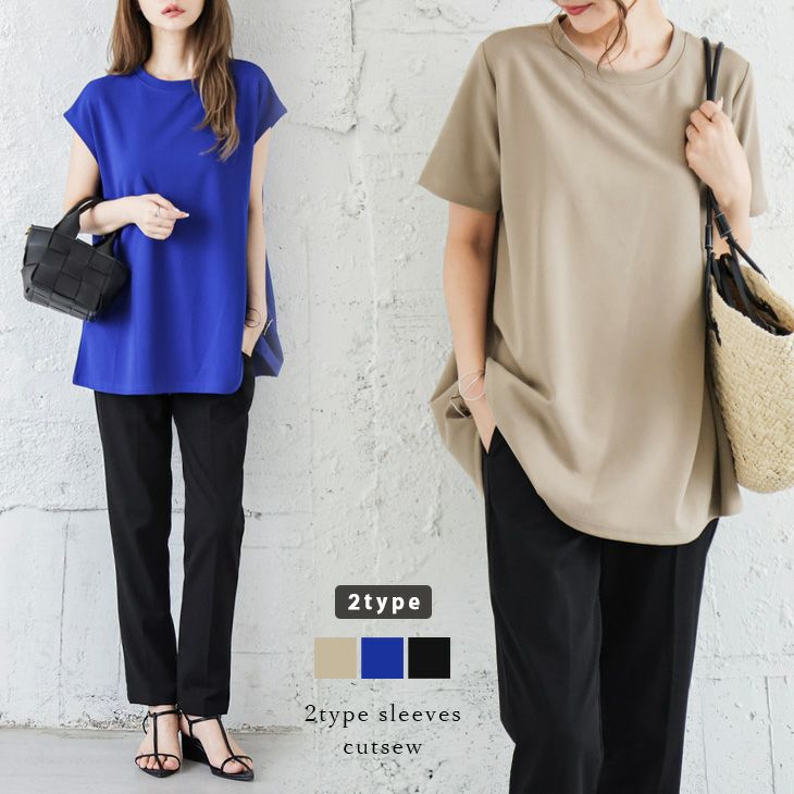 カラー半袖ブルー、半袖ブラック、半袖ベージュ、フレンチスリーブブルー、フレンチスリーブブラック、フレンチスリーブベージュ