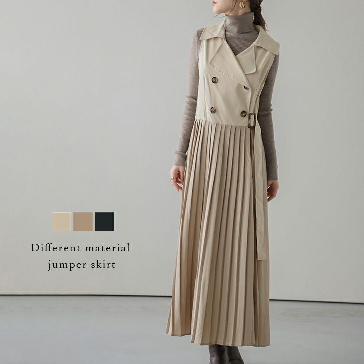 ジャンパースカート ジャンスカ ロング 異素材 ボトムス ジャンパースカート ジャンスカ ロング 異素材 ボトムス トレンチ レディース おすすめ おしゃれ フリーサイズ メール便 2025秋新作 【lswp203-400】【即納:1-5営業日】【送料無料】ヤ込1
