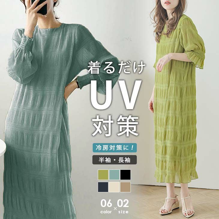 シフォンワンピース ロング ワンピース 長袖 半袖 紫外線対策 シャーリング シフォン シアー 紫外線対策 ナチュラルカラー ワンピース ロング 大人かわいい 半袖 レディース おしゃれ シアー 2025春夏 【lswp302-68a】【即納:1-5営業日】【送料無料】メ込2