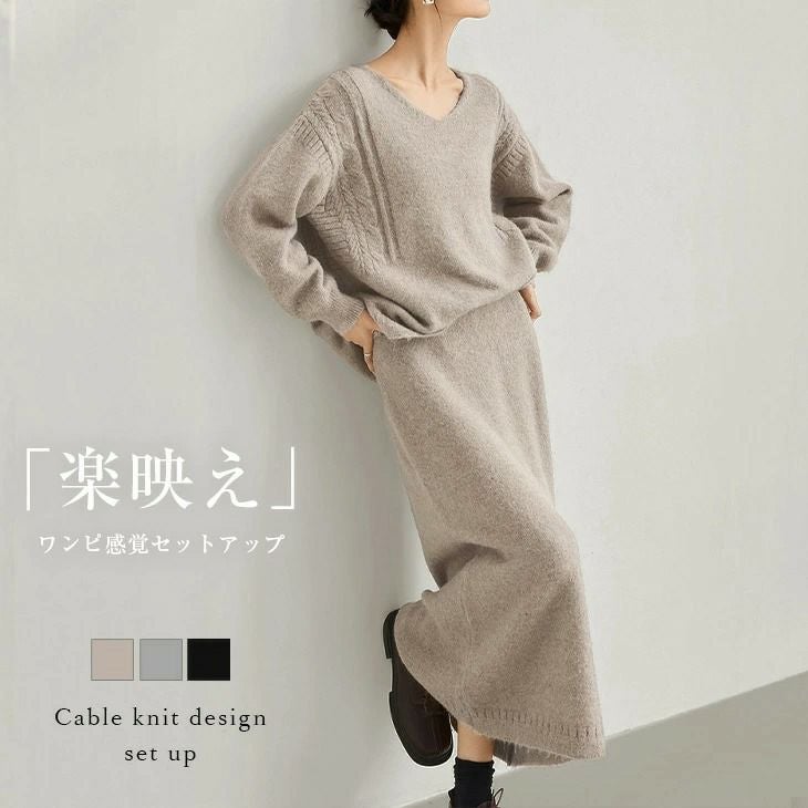 他の画像を見る セットアップ セットアイテム レディース おすすめ おしゃれ 【春夏半額SALE対象】 [AMELY by La-gemme]セットアップ ケーブル編み ニット トップス ロング丈スカート ゆったり Vネック 着回し 細見え 長袖 セットアイテム レディース おすすめ おしゃれ フリーサイズ 2025春夏新作 【aseaw24-929】【即納:1-5営業日】【送料無料】宅込 通常 ¥ 13,960 のところ ¥ 6,980 税込 詳細を見る お気に入りに登録する