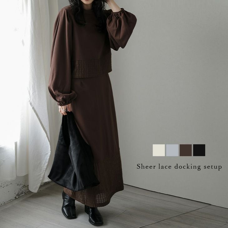 他の画像を見る セットアップ シアーレース ドッキング スカート 【秋冬半額SALE対象】 [AMELY by La-gemme]セットアップ シアーレース ドッキング ボリュームスリーブ タイトスカート Iライン スタイルアップ 着映え 着回し 上品 フェミニン レディース 2025秋冬新作【aseaw25-1513】【即納:1-5営業日】【送料無料】宅込 通常 ¥ 9,960 のところ ¥ 4,980 税込 詳細を見る お気に入りに登録する