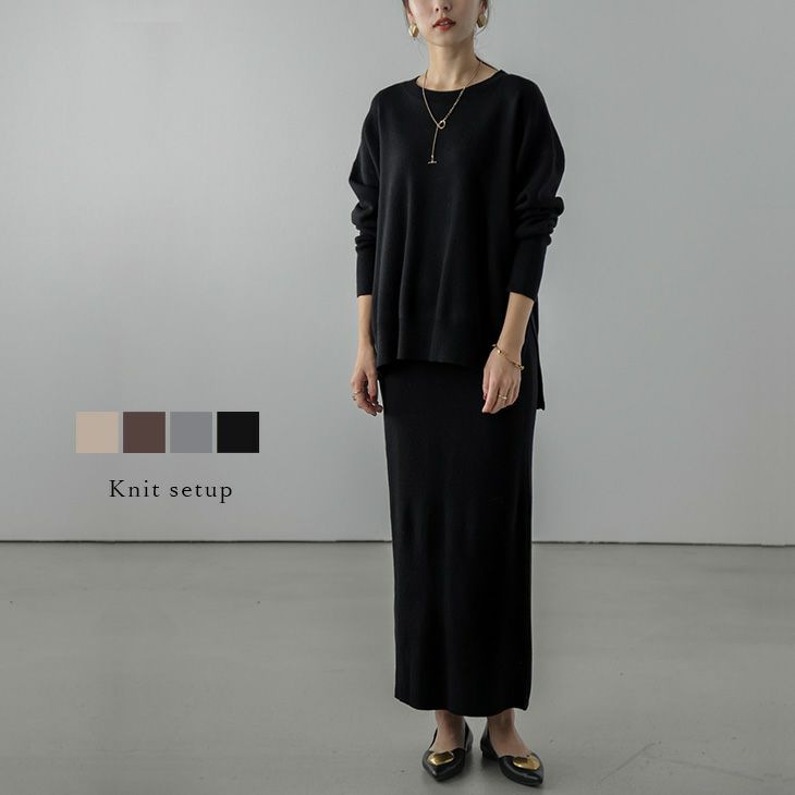 他の画像を見る セットアップ ニット トップス スカート プルオーバー 【秋冬半額SALE対象】 [AMELY by La-gemme]セットアップ ニット トップス スカート プルオーバー タイトスカート 2点セット 着回し シンプル セットアイテム レディース おすすめ おしゃれ ブラック 2025春夏新作 【ase303-35a】【即納:1-5営業日】【送料無料】宅込 通常 ¥ 9,800 のところ ¥ 4,980 税込 詳細を見る お気に入りに登録する