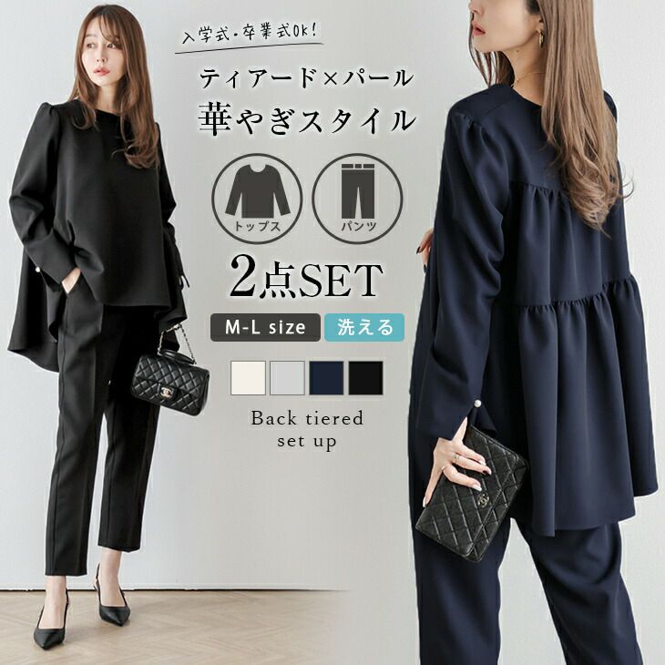 他の画像を見る セットアップ ティアード パール フォーマル キレイめ 【秋冬半額SALE対象】 [AMELY by La-gemme]セットアップ ティアード パール フォーマル キレイめ オフィス セレモニー オケージョン トップス テーパードパンツ レディース おすすめ おしゃれ 2025春夏新作【ass24-se109】【即納:1-5営業日】【送料無料】60込 通常 ¥ 8,980 のところ ¥ 4,480 税込 詳細を見る お気に入りに登録する