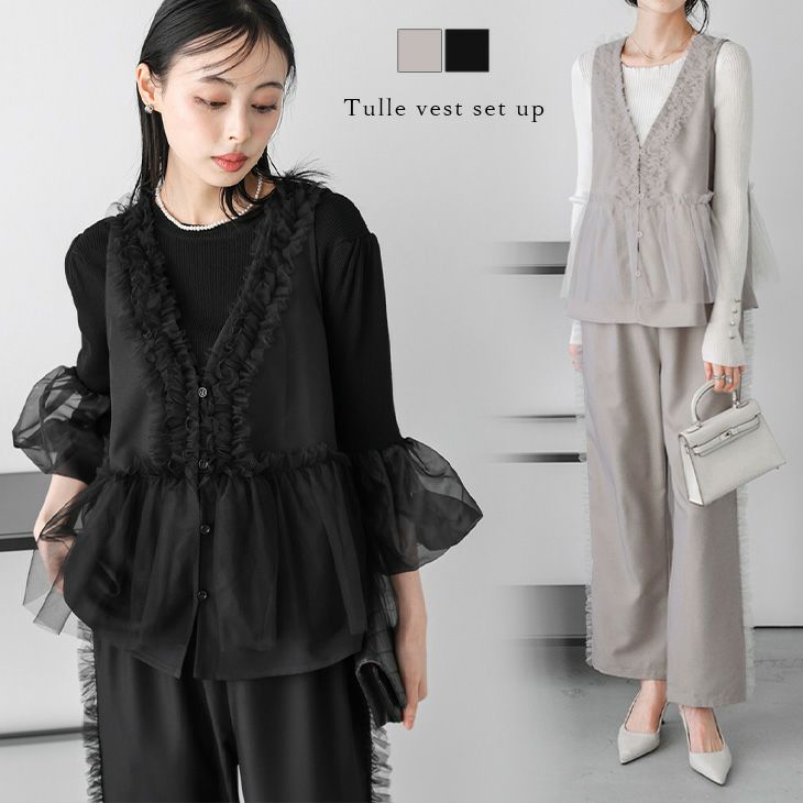 他の画像を見る フリル チュール ベスト セットアップ ボトムス 【秋冬半額SALE対象】 フリル チュール ベスト セットアップ ボトムス 深Vネック 脚長効果 レディース おすすめ おしゃれ フリーサイズ 2025春夏新作 【lssess25-1047】【即納:1-5営業日】【送料無料】宅込 通常 ¥ 11,960 のところ ¥ 5,980 税込 詳細を見る お気に入りに登録する