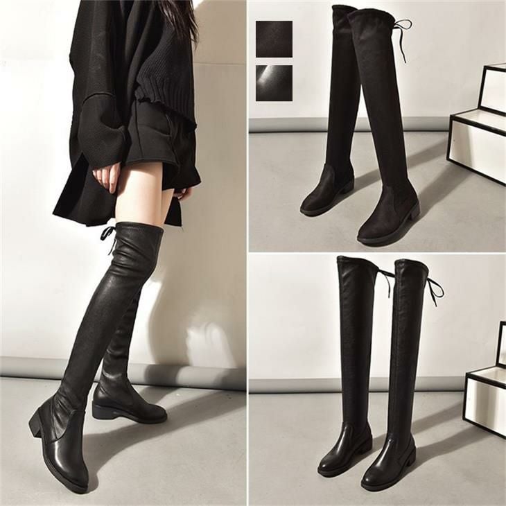 ニーハイ ストレッチブーツ 無地 ロングブーツ きれいめ ニーハイ ストレッチブーツ 無地 ロングブーツ きれいめ 膝上 ローヒール バックリボン トレンド おしゃれ 美脚 ラウンドトゥ 韓国ファッション【k3-bh681】【予約販売:15-20日】【送料無料】宅込