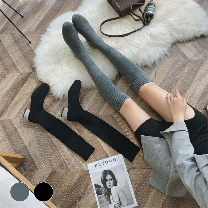 ソックスブーツ ロングブーツ ブーツ ソックスブーツ ロングブーツ レディース ブーツ ソックスブーツ ロング丈 ローヒール 細見 きれいめ 上品 柔らかい カジュアル 大人 おしゃれ 可愛い シューズ 靴 2025秋新作 【k3-lt108】【即納:1-5営業日】宅別