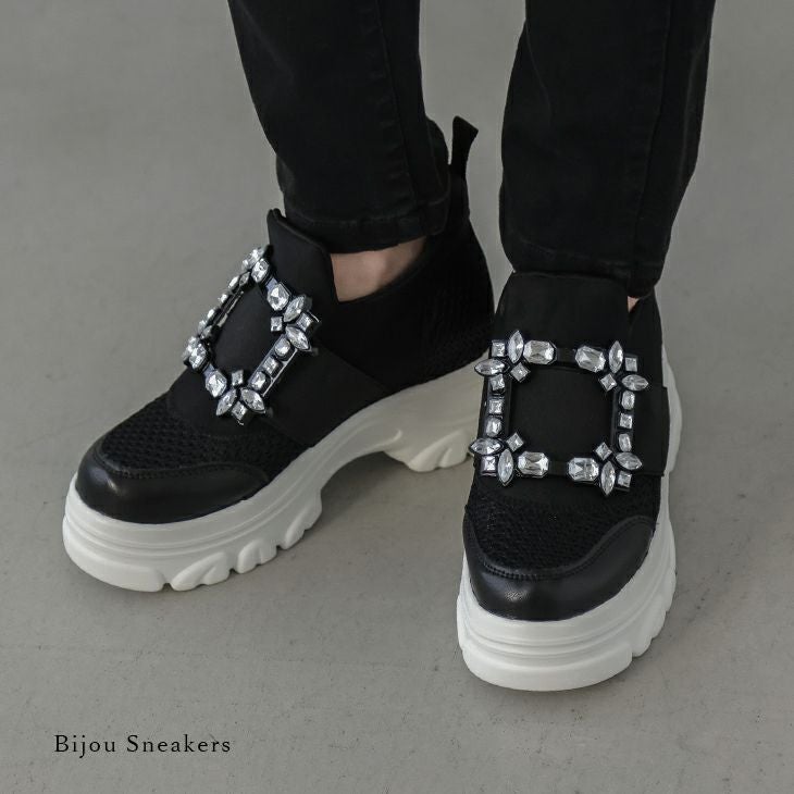 スニーカー ビジュー 厚底 ビジューバックル ボリュームソール スニーカー ビジュー 厚底 ビジューバックル ボリュームソール スポーティー 靴 レディース おすすめ おしゃれ ブラック 2025春夏新作 【lssh307-834】【即納:1-5営業日】【送料無料】80込