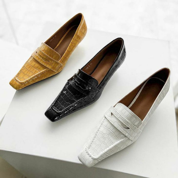 ローファー パンプス ヒール 美脚 クロコダイル柄 [AMELY by La-gemme]ローファー パンプス ヒール 美脚 クロコダイル柄 ローヒール 歩きやすい 疲れにくい PU 合皮 大人 上品 お出かけ デート 通勤 レディース 人気 トレンド プチプラ 韓国ファッション 【ash303-036】【予約販売:15-20日】【送料無料】60込
