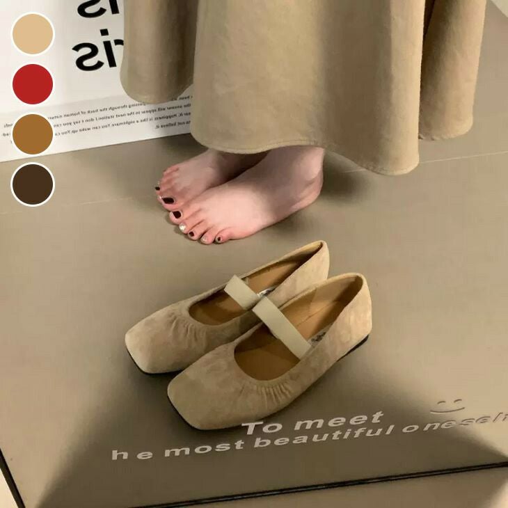 スクエアトゥ パンプス スエード風 シャーリング [AMELY by La-gemme]スクエアトゥ パンプス スエード風 シャーリング バレーシューズ ぺたんこ シンプル 楽ちん 春夏 おすすめ レディース オシャレ トレンド 人気 プチプラ 韓国ファッション 【ash406-658】【予約販売:15-20日】【送料無料】宅込