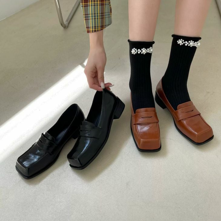 スクエアトゥ ローファー ローヒール 楽ちん シンプル [AMELY by La-gemme]スクエアトゥ ローファー ローヒール 楽ちん シンプル 無地 合皮 PU ガーリー カジュアル スクール 春夏 おすすめ レディース オシャレ トレンド 人気 プチプラ 韓国ファッション 【ash406-665】【予約販売:15-20日】【送料無料】宅込