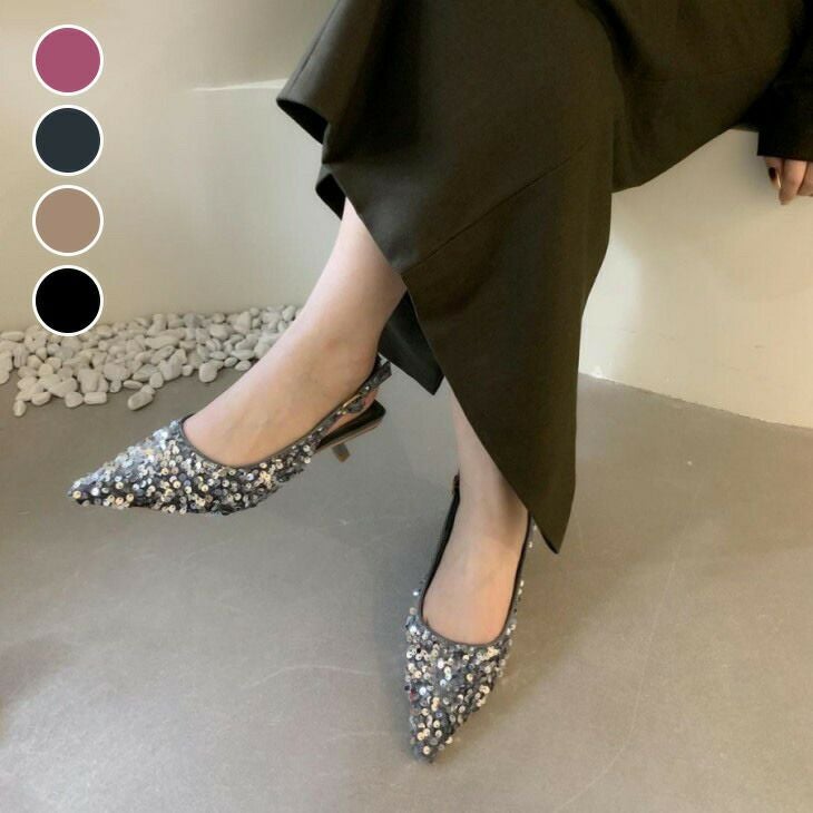 スパンコール バック ストラップ パンプス ローヒール [AMELY by La-gemme]スパンコール バック ストラップ パンプス ローヒール 二次会 結婚式 パーティー きれいめ カジュアル おすすめ レディース オシャレ トレンド 人気 プチプラ 韓国ファッション 【ash503-047】【予約販売:15-20日】【送料無料】宅込