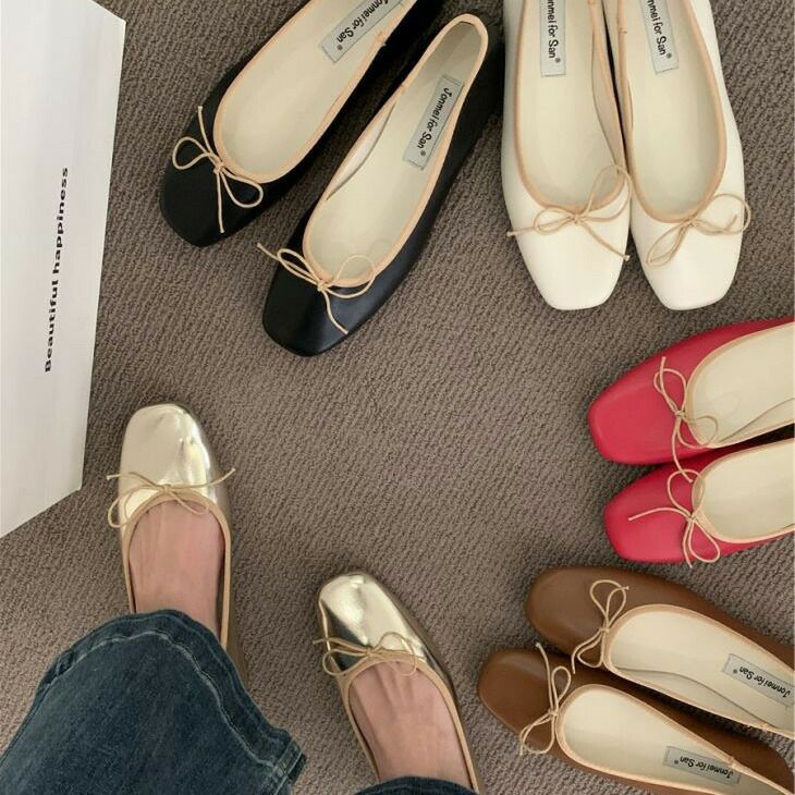パンプス シューズ リボン バレエシューズ スクエアトゥ [AMELY by La-gemme]パンプス シューズ リボン バレエシューズ スクエアトゥ スムース フラット バレエ バレー 歩きやすい カジュアル 韓国ファッション プチプラ【ashss24-174】【予約販売:15-20日】【送料無料】60込
