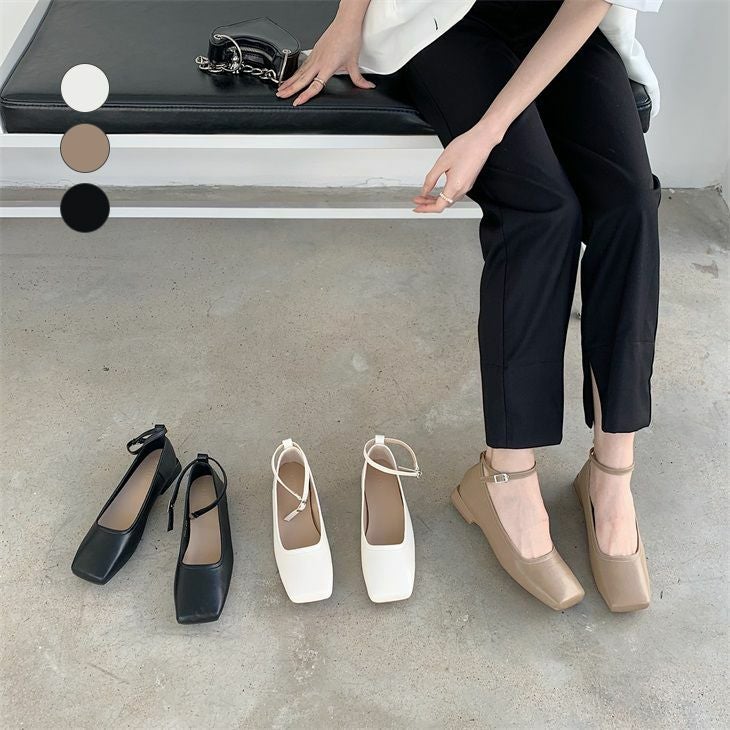 スクエアトゥ パンプス シンプル デザイン ストラップ スクエアトゥ パンプス シンプル デザイン ストラップ ローヒール ガーリー 靴 シューズ きれいめ おしゃれ お出掛け カジュアル OL 通勤 歩きやすい レディースファッション 韓国ファッション【jdl795-1】【予約販売:15-20日】【送料無料】宅込