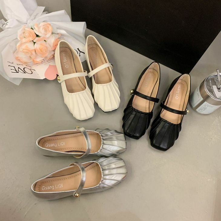 バレエシューズ ぺたんこ ギャザー ローヒール スクエアトゥ [AMELY by La-gemme]バレエシューズ ぺたんこ ギャザー ローヒール スクエアトゥ フラット ストラップ PU きれいめ 歩きやすい ベルト ガーリー シンプル お洒落 レディース 大人 韓国ファッション【k3-glq566】【即納:1-5営業日】【送料無料】60込