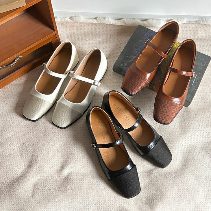 ローヒール パンプス ストラップ スクエアトゥ ぺたんこ [AMELY by La-gemme]ローヒール パンプス ストラップ スクエアトゥ ぺたんこ PU フラット 疲れにくい 歩きやすい カジュアル ガーリー シンプル お洒落 レディース 大人 韓国ファッション【k3-mxj5】【予約販売:15-20日】【送料無料】60込
