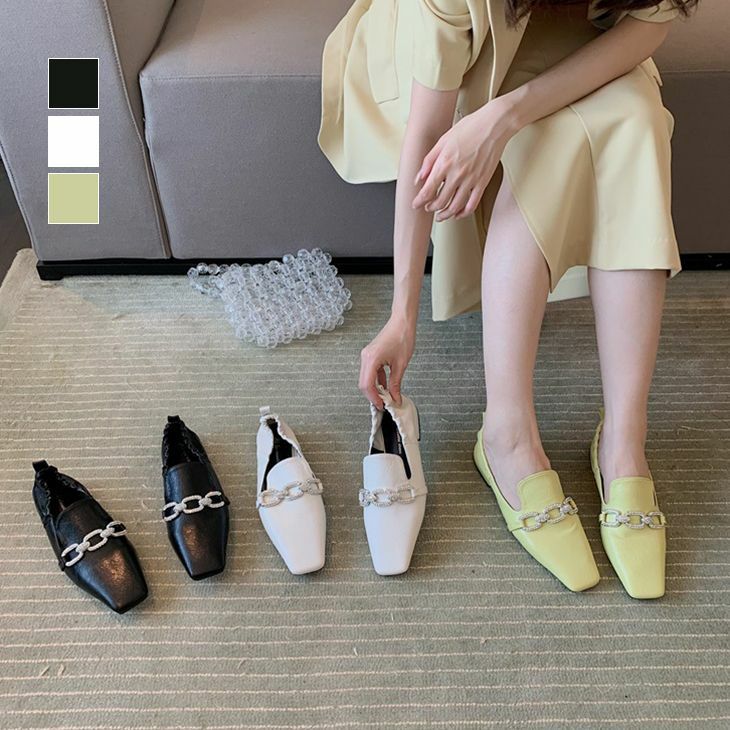 3連チェーン デザイン フラットシューズ スクエアトゥ 3連チェーン デザイン フラットシューズ スクエアトゥ スリッポン風 ビット 楽ちん シンプル きれいめ オフィス カジュアル お洒落 ガーリー 大人 オケージョン 女子会 レディース 靴 韓国ファッション【mk1207】【予約販売:15-20】【送料無料】宅込