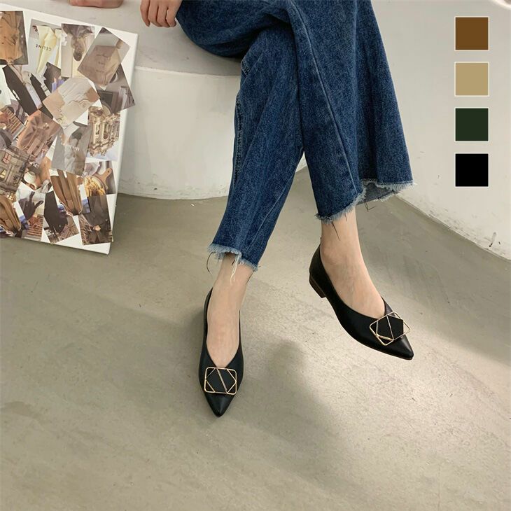 バックル付き ポインテッドトゥ フラット パンプス PU バックル付き ポインテッドトゥ フラット パンプス PU レザー風 パンプス シンプル シューズ 靴 大人 かっこいい 柔らか ぺたんこ バレーシューズ らくちん おしゃれ レディース 韓国ファッション【tty108-85】【予約販売:15-20日】【送料無料】宅込