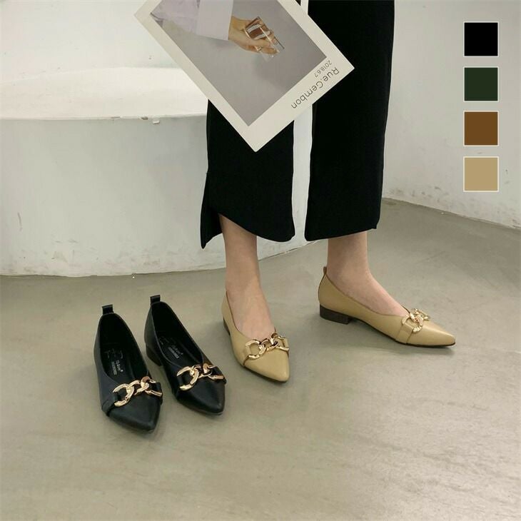 チェーン付き ポインテッドトゥ パンプス PU レザー風 チェーン付き ポインテッドトゥ パンプス PU レザー風 パンプス フラット シンプル シューズ 靴 大人 かっこいい 綺麗め 柔らか ぺたんこ バレーシューズ ローヒール らくちん おしゃれ レディース 韓国ファッション【tty108-87】【予約販売:15-20日】【送料無料】宅込