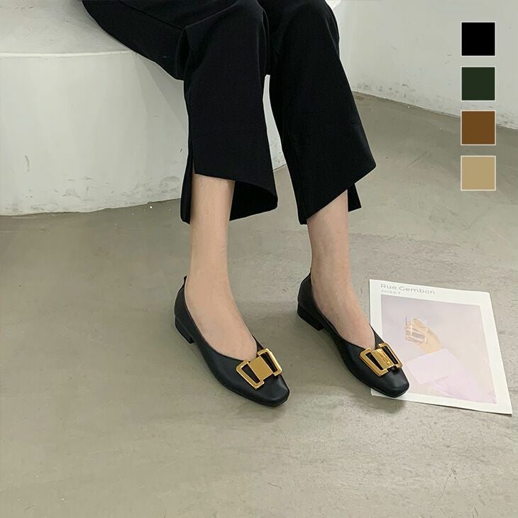 リボン風 バックル パンプス PU レザー風 リボン風 バックル パンプス PU レザー風 パンプス フラット シンプル シューズ 靴 大人 かっこいい きれいめ ゴールド金具 柔らか ぺたんこ バレーシューズ ローヒール らくちん おしゃれ レディース 韓国ファッション【tty612-96】【予約販売:15-20日】【送料無料】宅込