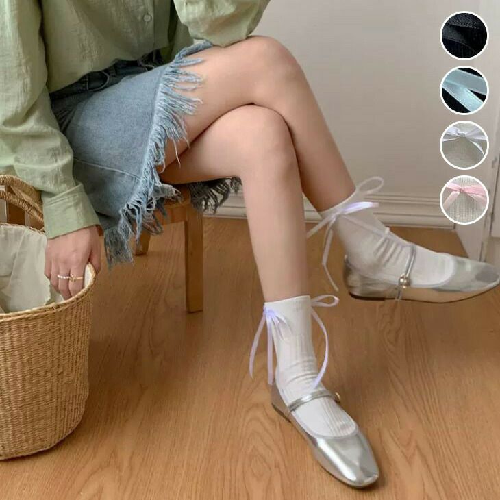 テープリボン付き ソックス リボン 細リボン ガーリー [AMELY by La-gemme]テープリボン付き ソックス リボン 細リボン ガーリー シンプル 無地 スニーカー パンプス フェミニン 靴下 おすすめ レディース オシャレ トレンド 人気 プチプラ 韓国ファッション 【akb406-674】【予約販売:15-20日】【送料無料】メ込2