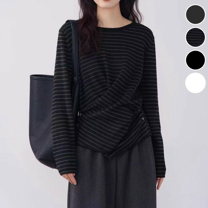 カットソー ドレープデザイン サイドボタン 大人カジュアル キレイめ シンプル 長袖 トップス カットソー ドレープデザイン サイドボタン 大人カジュアル キレイめ シンプル 長袖 トップス おすすめ おしゃれ レディース トレンド 人気 プチプラ 韓国ファッション 2025春夏新作 【60001-jm】【予約販売:15-20日】【送料無料】メ込2
