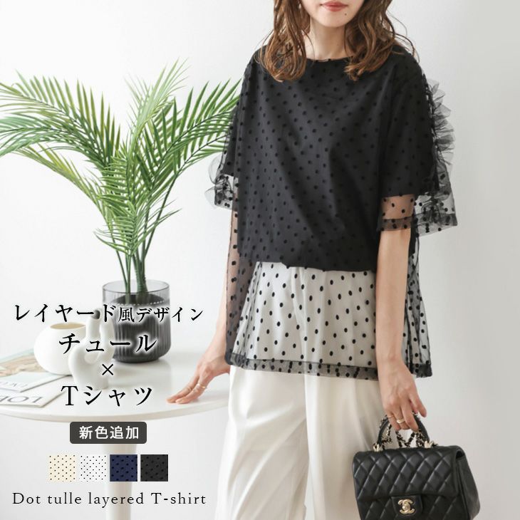 トップス Tシャツ ドッキング チュール ドット [AMELY by La-gemme]トップス Tシャツ ドッキング チュール ドット レイヤードフロッキー ギャザー フェミニン 半袖 トップス レディース おすすめ おしゃれ 2025春夏新作 【atpss24-405】【即納:1-5営業日】【送料無料】メ込2