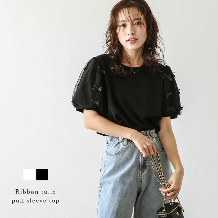 トップス リボン シアー パフスリーブ トレンド トップス リボン シアー パフスリーブ フェミニン ガーリー 着映えトレンド 大人かわいい レディース おすすめ おしゃれ フリーサイズ メール便 2025春夏新作【lstpaw24-649】【即納:1-5営業日】【送料無料】メ込2