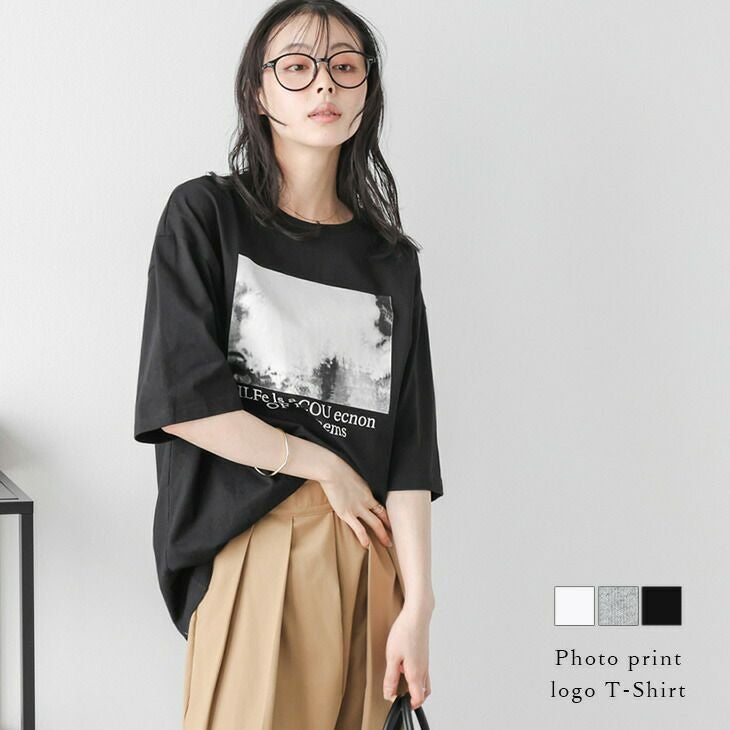 フォトプリント ロゴ Tシャツ 半袖 モード 【春夏半額SALE対象】 フォトプリント ロゴ Tシャツ 半袖 モード ドロップショルダー オーバーサイズ トップス レディース おすすめ おしゃれ フリーサイズ 2025春夏新作 【lstpss25-1242】【即納&予約:4月9日入荷予定順次発送】【送料無料】メ込2