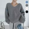 Vネック ステッチ ニット ダメージ風 シンプル 【秋半額SALE対象】 [AMELY by La-gemme]Vネック ステッチ ニット ダメージ風 シンプル オーバーサイズ ドロップショルダー 長袖 バックタグ 春夏 おすすめ レディース オシャレ トレンド 人気 プチプラ 韓国ファッション【24aw-it259】【即納:1-5営業日】【送料無料】宅込