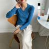 リブVネック ニット トップス 長袖 リブ [AMELY by La-gemme]【春夏販売】リブVネック ニット トップス 長袖 リブ シンプル 重ね着 インナー レイヤード 細身 伸縮 細見え 多色展開 お洒落 トレンド きれいめ オフィス カジュアル レディース 春夏 韓国ファッション【3308-lj】【即納:1-5営業日】【送料無料】メ込1