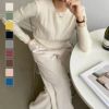 [AMELY by La-gemme]ランダム リブストライプ ニット [AMELY by La-gemme]ランダム リブストライプ ニット トップス 長袖 ラウンドネック クルーネック 重ね着 インナー レイヤード 細身 伸縮 細見え 多色展開 トレンド レディース 春夏 韓国ファッション【9905-lj】【予約販売:15-20日】【送料無料】メ込1