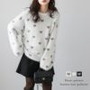 ハート柄 フェザーニット プルオーバー 長袖 ボリューム 【秋半額SALE対象】 [AMELY by La-gemme]ハート柄 フェザーニット プルオーバー 長袖 ボリュームスリーブ ドロップショルダー 配色カラー 大人ガーリー トップス レディース おすすめ おしゃれ 2025春夏新作 【atpaw24-698】【即納:1-5営業日】【送料無料】宅込