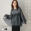 チュール ドッキング ニット レイヤード 長袖 【秋半額SALE対象】 [AMELY by La-gemme]チュール ドッキング ニット レイヤード 長袖 ぽわん袖 ラウンドネック プルオーバー トップス レディース おすすめ おしゃれ 2025春夏新作 【atpaw24-777】【即納:1-5営業日】【送料無料】60込