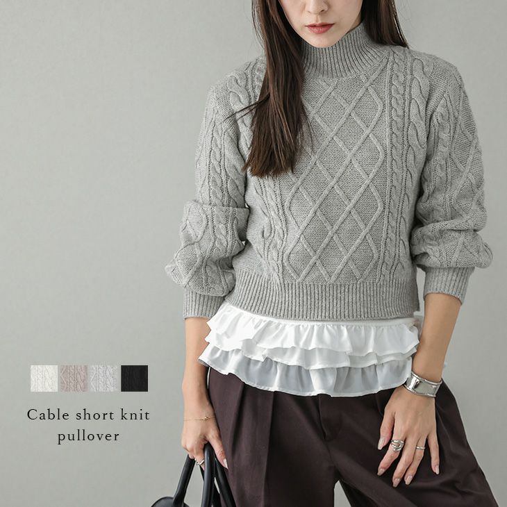 ケーブルニット クロップド丈 ハイネック ぽわん袖 【秋冬半額SALE対象】 [AMELY by La-gemme]ケーブルニット クロップド丈 ハイネック ぽわん袖 ナチュラル ガーリー 大人カジュアル キレイめ トップス レディース おすすめ おしゃれ フリーサイズ 2025秋冬新作【atpaw25-1565】【即納:1-5営業日】【送料無料】宅込