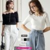 サマーニット スカラップ 2way 5分袖 リブニット [AMELY by La-gemme]サマーニット スカラップ 2way 5分袖 リブニット 細見え オフショルダー キレイめ 大人可愛い レディース おすすめ おしゃれ フリーサイズ メール便 2025春夏新作【atpss24-373】【即納:1-5営業日】【送料無料】ユ込2