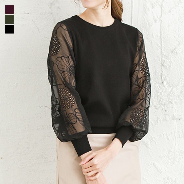 ニット セーター ラウンドネック レディース トップス 【最終入荷!ラストチャンス!】レース ニット セーター ラウンドネック レディース 大人 上品 トップス ブラック メール便 2025春夏 フリー 【lgtp-zz1098】【即納:1-5営業日】【送料無料】メ込2