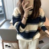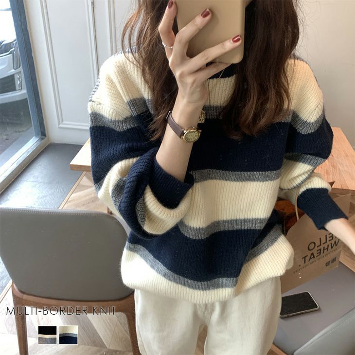 ニット セーター Uネック ボーダー ゆったり ニット セーター Uネック ボーダー ゆったり 体型カバー チュニック オシャレ 体型カバー オーバーサイズ ケーブル 【lstp211-357】【即納:1-5営業日】【送料無料】宅込