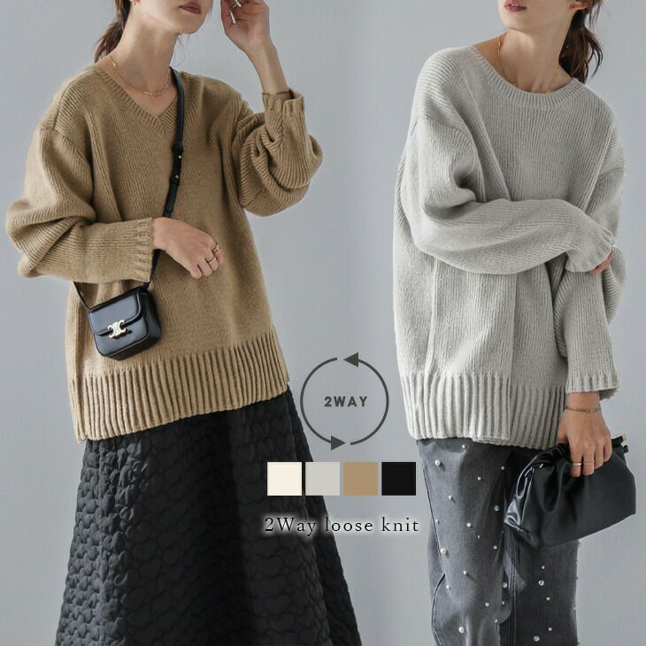 前後2Way ウール混 ニット トップス ラウンドネック 【春夏半額SALE対象】 前後2Way ウール混 ニット トップス ラウンドネック Vネック レイヤード ゆったり 2025秋新作 冬 レディース【lstp212-362】【即納:1-5営業日】【送料無料】宅込