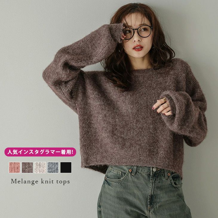 トップス ニット メランジ ぽわん袖 クロップド丈 【秋半額SALE対象】 トップス ニット メランジ ぽわん袖 クロップド丈 ルーズシルエット ドロップショルダー キレイめ 大人カジュアル レディース おすすめ おしゃれ フリーサイズ メール便 2025春夏新作【lstpaw24-621】【即納&予約:(1)即納/(2)10月30日入荷予定順次発送】【送料無料】メ込3