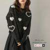 ニット ハート ミックス糸 メランジ 【秋半額SALE対象】 ニット ハート ミックス糸 メランジ ジャガードニット ラウンドネック ドロップショルダー ガーリー トップス レディース おすすめ おしゃれ 2025春夏新作 【lstpaw24-779】【即納:1-5営業日】【送料無料】60込