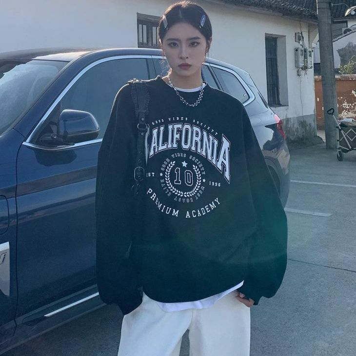 トップス ロゴ スウェット トレーナー プルオーバ [AMELY by La-gemme]トップス ロゴ スウェット トレーナー プルオーバ オーバーサイズ ゆったり カジュアル シンプル 長袖 レディース 韓国ファッション 【24aw-it06】【予約販売:15-20日】【送料無料】宅込