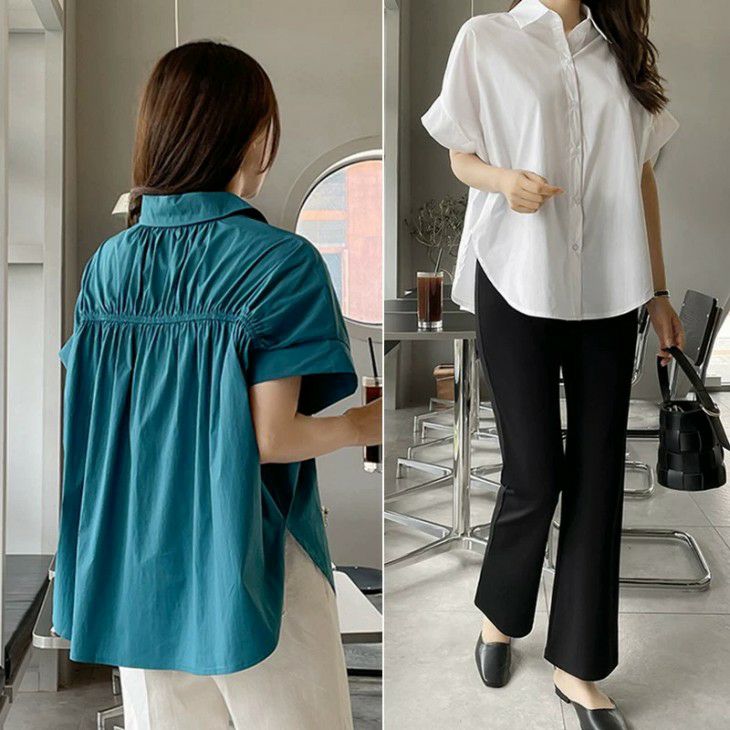 バック シャーリング ブラウス シャツ 半袖 [AMELY by La-gemme]バック シャーリング ブラウス シャツ 半袖 サイドカット 無地 シンプル きれいめ カジュアル オフィス 夏 おすすめ レディース オシャレ トレンド 人気 プチプラ 韓国ファッション 【00306-day】【予約販売:15-20日】【送料無料】メ込2